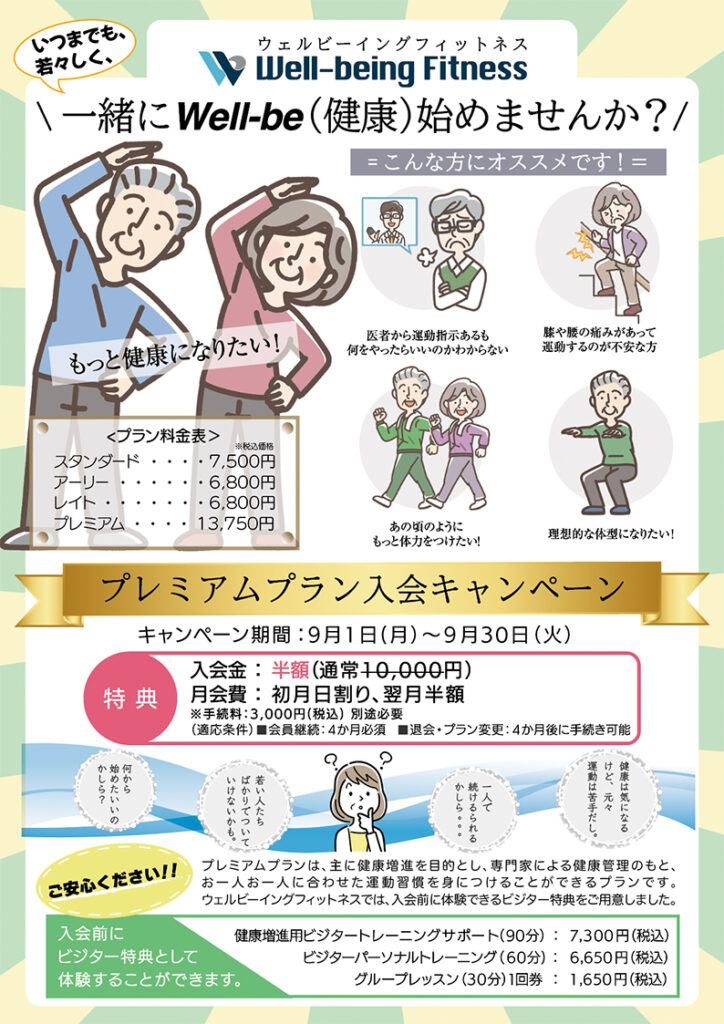 Well-being Fitnessでは現在、プレミアムプラン入会キャンペーンを実施しています!